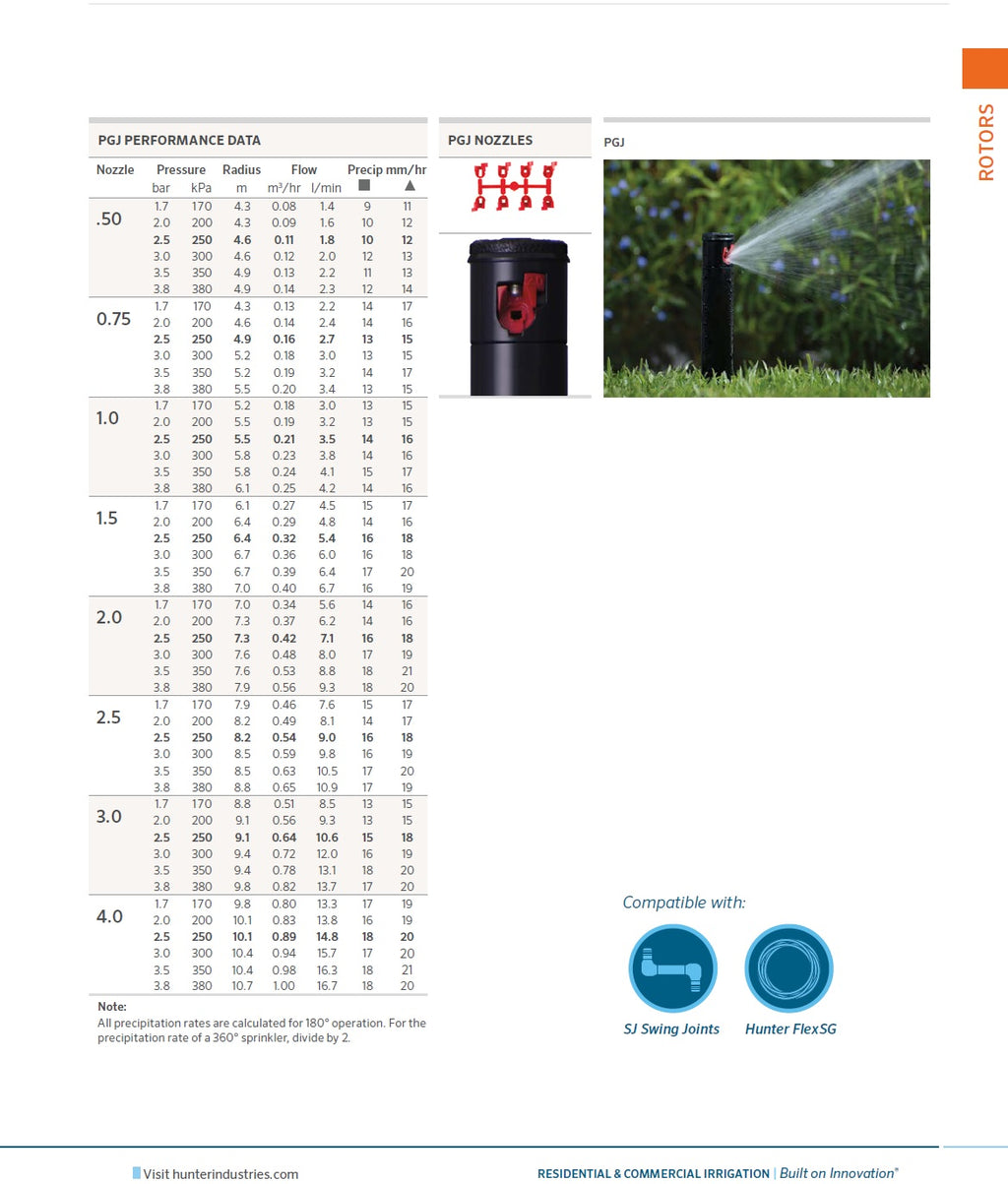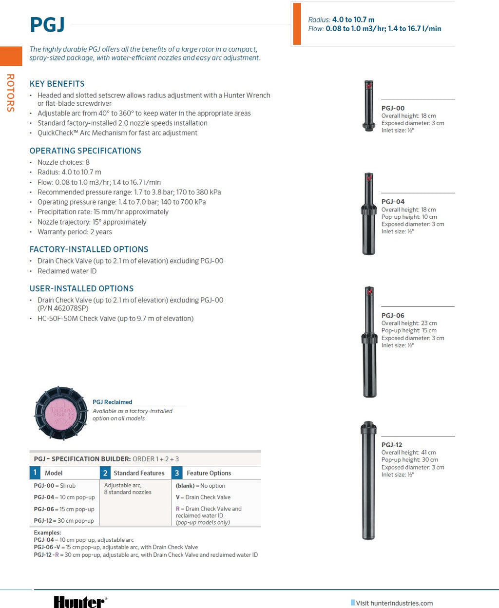 Hunter PGJ-12 12 Rotor (4.3m - 11.6m) - The Hunter PGJ has all the features and benefits of the PGP scaled down to fit typical spray applications. They come with a rack of easy-to-install-and-change water efficient nozzles