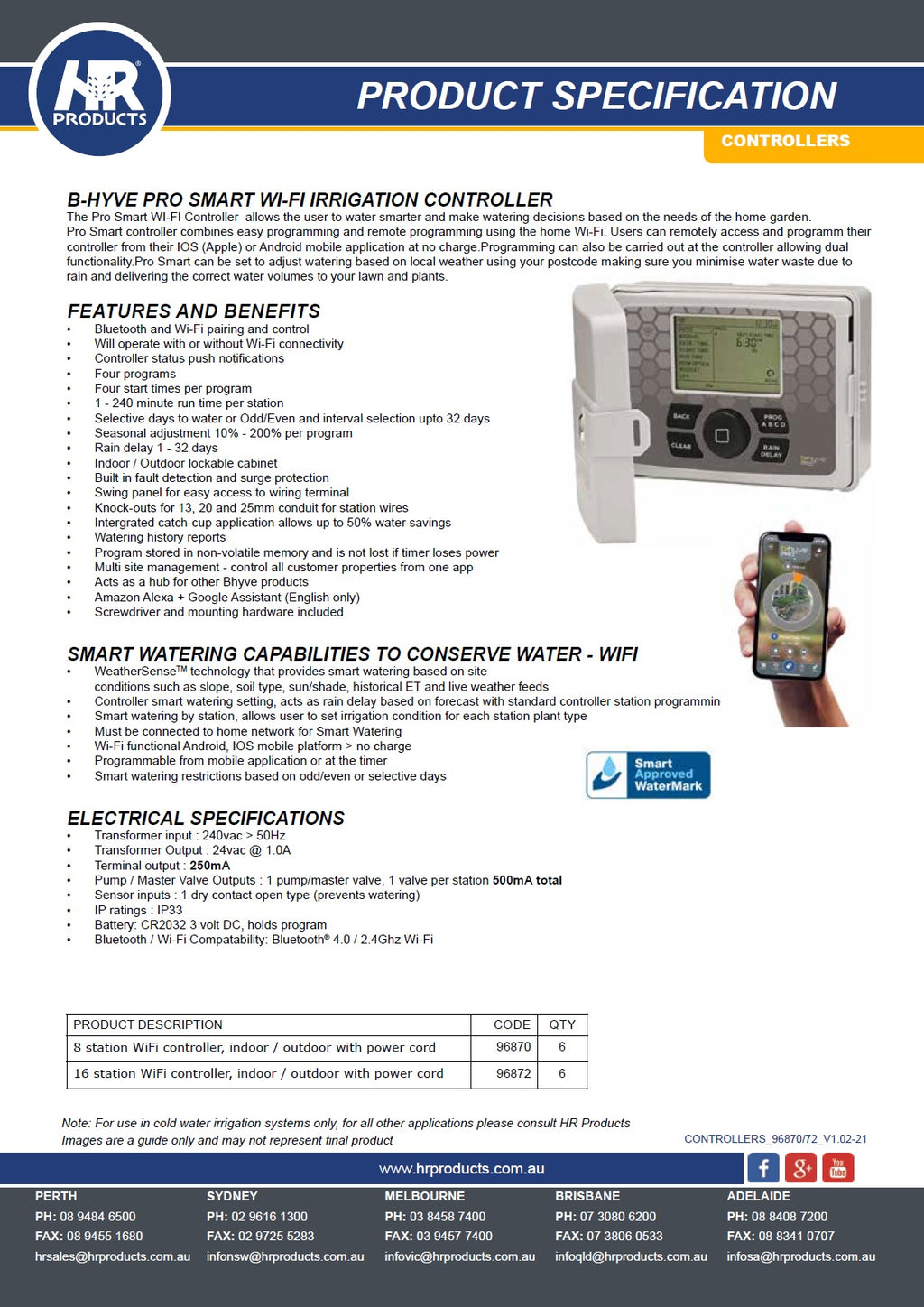 The Pro Smart Wi-Fi Controller allows the user to water smarter and make watering decisions based on the needs of the home garden. Pro Smart controller combines easy programming and remote programming using the home Wi-Fi. Users can remotely access and program their controller from either IOS (Apple) or Android mobile application at no charge. Programming can also be carried out at the controller allowing dual functionality. Pro Smart can be set to adjust watering based on local weather using your postcode making sure you minimise water waste due to rain and delivering the correct water volumes to your lawn and plants.