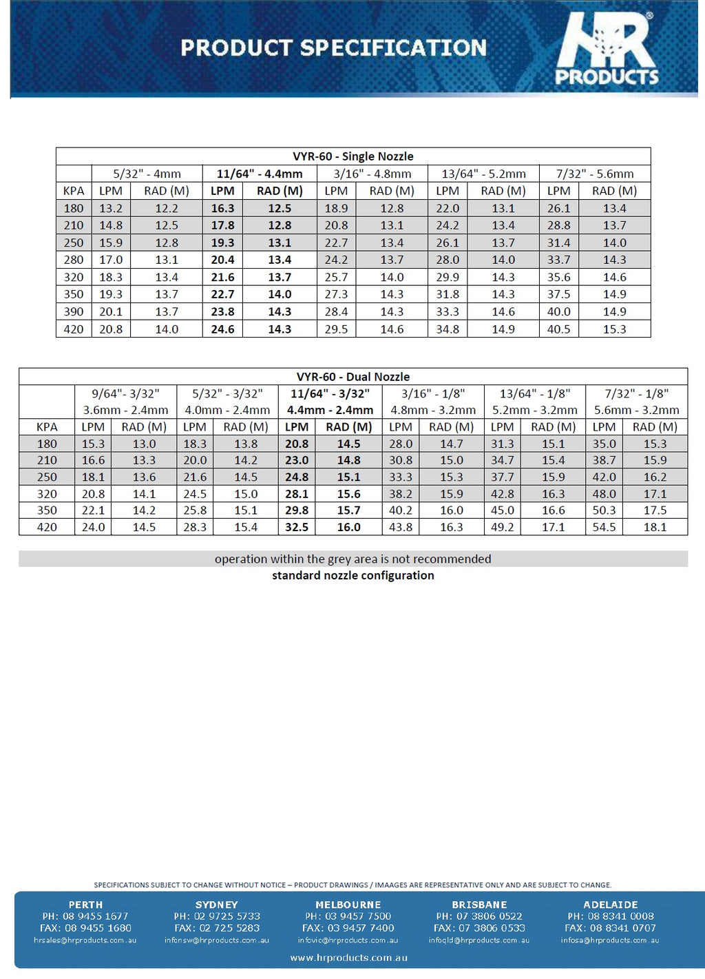 - Dual nozzle - 24° main nozzle trajectory; 12° secondary nozzle