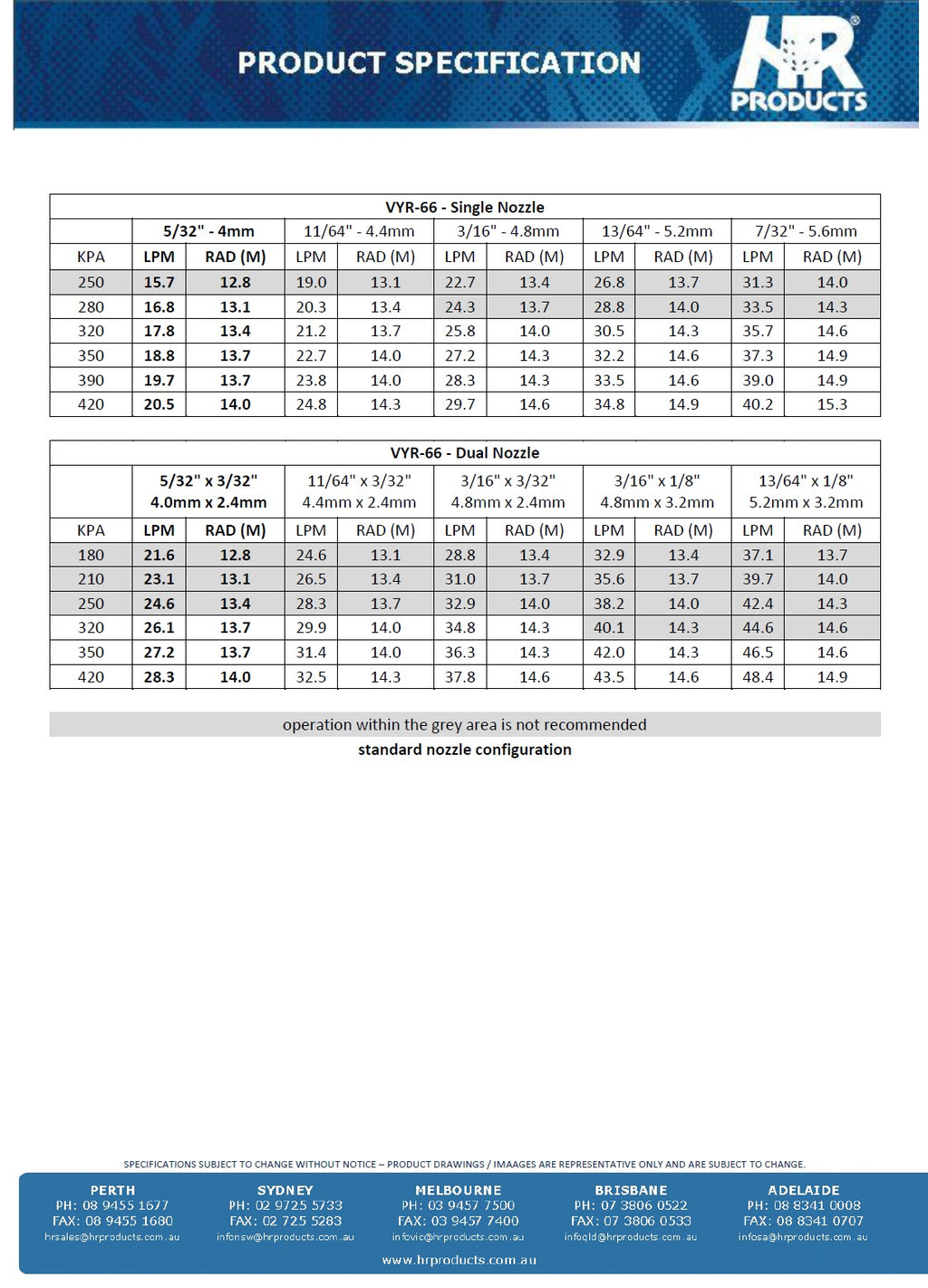 - Dual nozzle - 30° main nozzle trajectory; 11° secondary nozzle