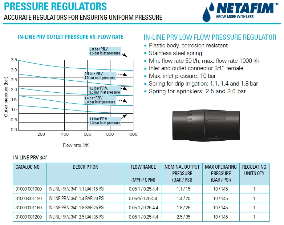 Netafim 20mm In-Line Low Flow Pressure Regulator (1.1 bar)
